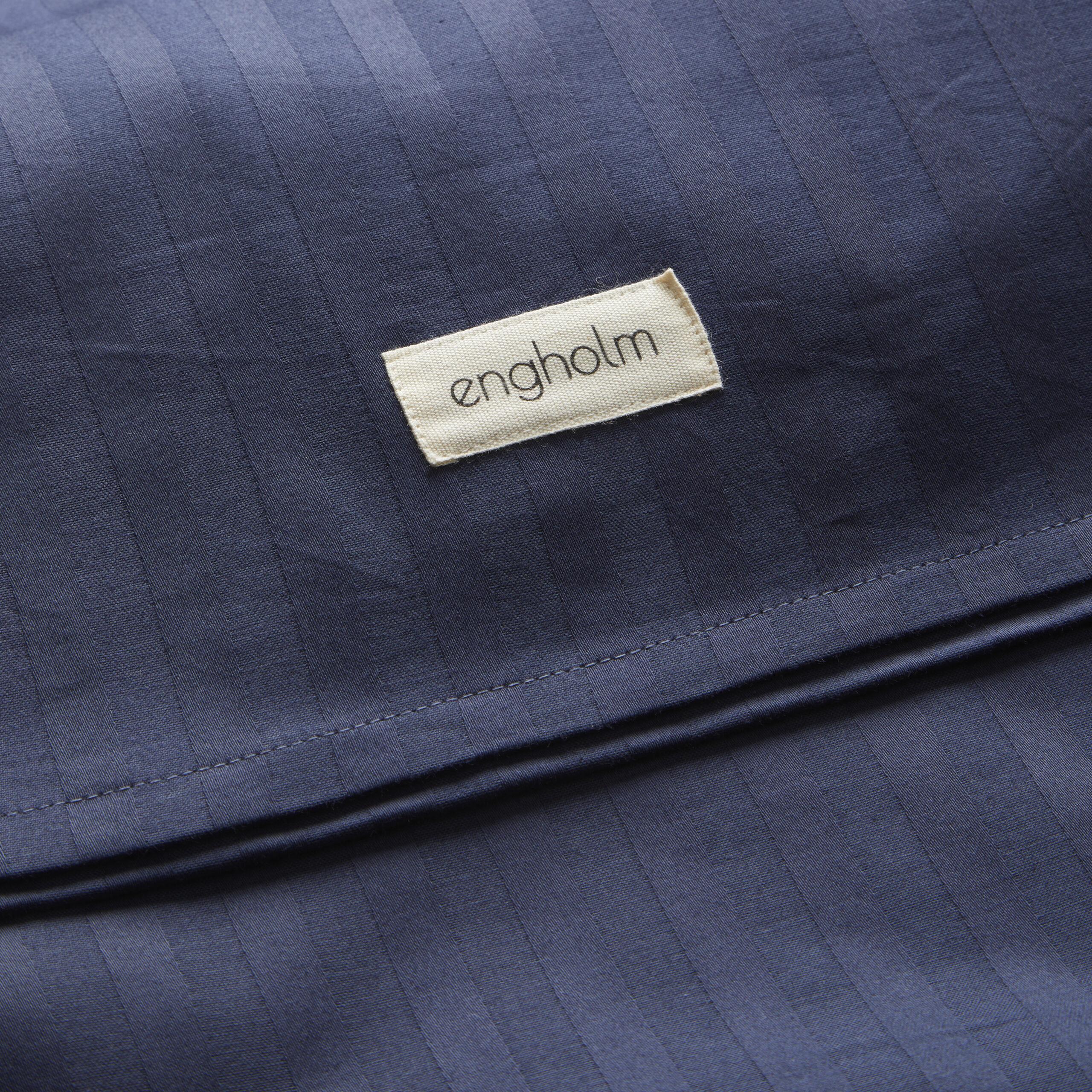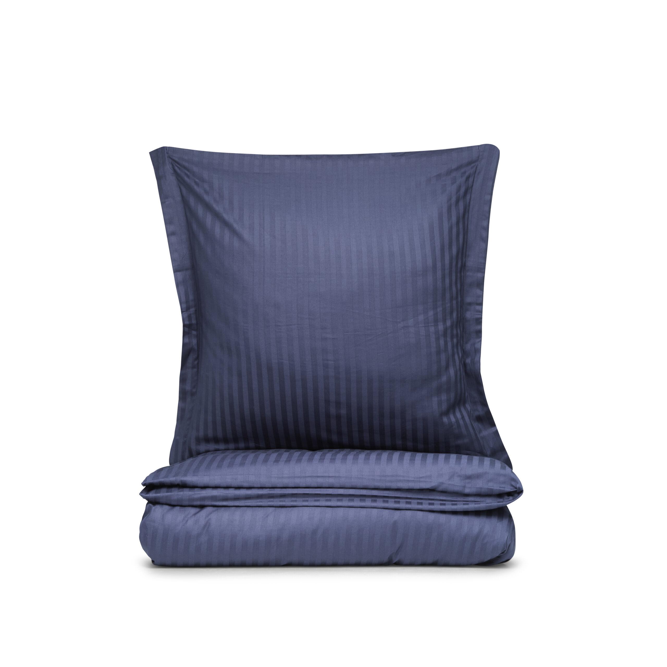 Dette fine hotelstribede sengesæt i 100% bomuldssatin er det perfekte valg til dig der elsker en klassisk og stilfuld indretning. Den dybblå farve og klassiske satinvævning giver sengesættet et rigtig fint mønster.