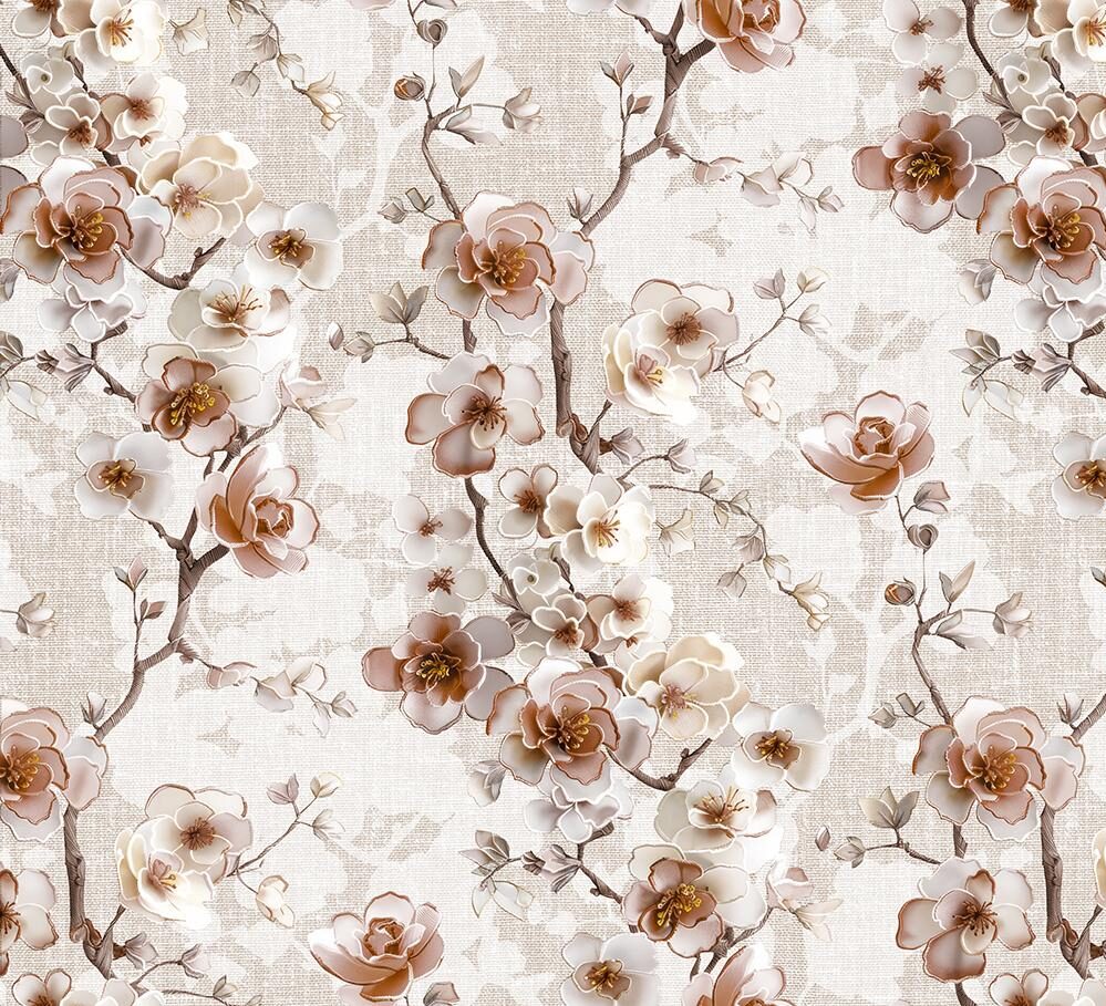 Voksdug – GIRONA – Blomster – Brun – 140 cm – 20m pr. rulle